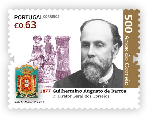 Visibility: public Image owner: none postage 10/9/2017 0,63€ multi issue=500 Years of Postal Service in Portugal d=Guilhermino Augusto de Barros unwmk perf=13 Crops No visible images cropped from this one. Measurements Resolution is unknown. Source Source name: Colnect File URL: http://i.colnect.net/b/4715/754/Guilherme-Augusto-de-Barros-2º-Director-Geral-dos-Correios.jpg Uploaded July 2, 2018, 10:26 pm by Stan Shebs |