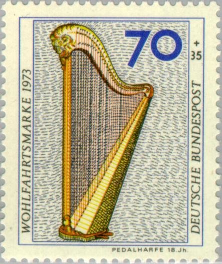Visibility: public Image owner: none semipostal 10/5/1973 70+35(pf) multi issue=welfare 1973 dt=musical instruments (1973 Germany) d=Pedal Harp unwmk Crops No visible images cropped from this one. Measurements Resolution is unknown. Source Source name: Colnect File URL: http://i.colnect.net/images/b/152/897/Pedal-Harp.jpg Uploaded August 26, 2014, 6:58 pm by Stan Shebs |