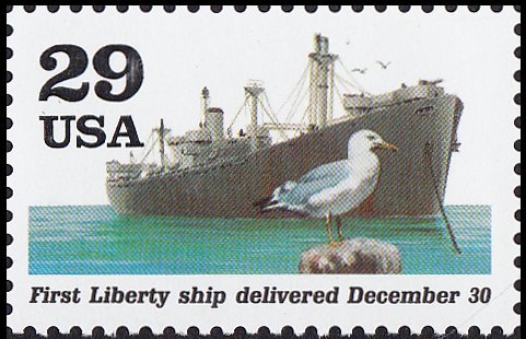 Visibility: public Image owner: none postage 9/3/1991 29c multi issue=1941: A World at War dt=World War II (1991) d=Liberty ship & sea gull - First Liberty ship delivered December 30 unwmk perf=11 Crops No visible images cropped from this one. Measurements Resolution is unknown. Source Source name: Colnect File URL: http://i.colnect.net/b/5099/433/Liberty-Ship-Sea-Gull-First-Liberty-ship-delivered-Dec.jpg Uploaded July 23, 2018, 6:55 pm by Stan Shebs |