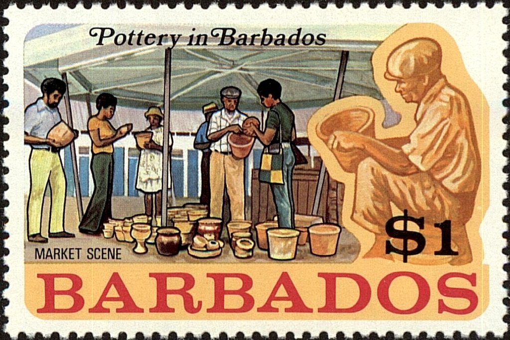 Visibility: public Image owner: none postage 3/1/1973 $1 multi dt=pottery in Barbados d=Pottery on sale wmk=St Edwards crown & CA perf=14 Crops No visible images cropped from this one. Measurements Resolution is unknown. Source Source name: Colnect File URL: http://i.colnect.net/b/4398/430/Pottery-on-sale.jpg Uploaded January 16, 2019, 12:50 am by Stan Shebs |