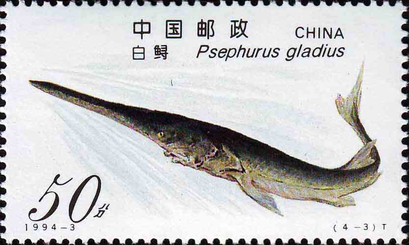 Visibility: public Image owner: none postage 3/18/1994 50f multi dt=Sturgeons d=Psephurus gladius unwmk perf=12.25 Crops No visible images cropped from this one. Measurements Resolution is unknown. Source Source name: Colnect File URL: http://i.colnect.net/b/5157/896/Chinese-Paddlefish-Polyodon-gladius.jpg Uploaded January 28, 2019, 10:09 pm by Stan Shebs |