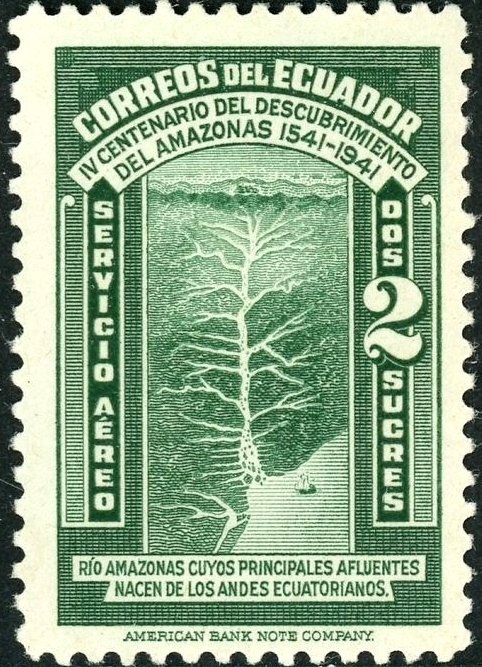 Visibility: public Image owner: none airmail 1/30/1942 2s grn issue=Amazon discovery 400th unwmk Crops No visible images cropped from this one. Measurements Resolution is unknown. Source Source name: Colnect File URL: http://i.colnect.net/b/5000/374/Panorama-of-the-Amazon.jpg Uploaded February 2, 2019, 6:50 pm by Stan Shebs |