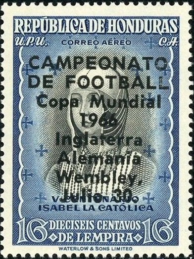 Visibility: public Image owner: none airmail 12/1/1966 16c bl&blk issue=World Cup 1966 unwmk Crops No visible images cropped from this one. Measurements Resolution is unknown. Source Source name: Colnect File URL: http://i.colnect.net/b/5112/379/Football-World-Cup-London.jpg Uploaded February 14, 2019, 2:20 am by Stan Shebs |