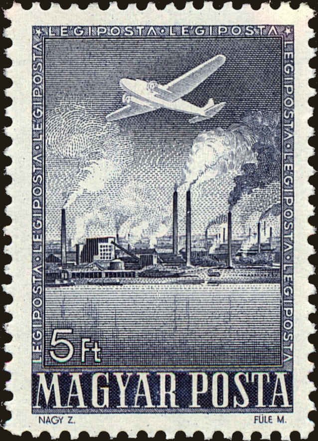 Visibility: public Image owner: none airmail 10/29/1950 5fo gray blue issue=1950 regular airmail d=plane over Matyas Rakosi Steel Mill unwmk perf=12½x12 Crops No visible images cropped from this one. Measurements Resolution is unknown. Source Source name: Colnect File URL: http://i.colnect.net/b/5173/817/Csepel-Ironworks.jpg Uploaded February 15, 2019, 1:36 am by Stan Shebs |