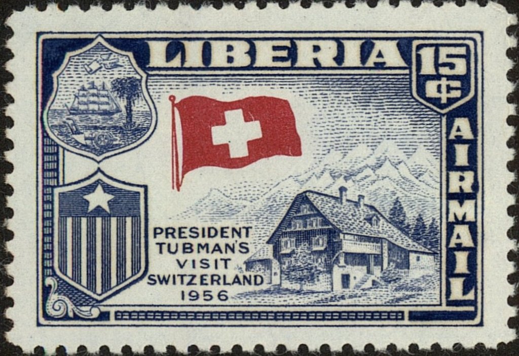 Visibility: public Image owner: none airmail 1/10/1958 15c issue=Tubman tour of Europe unwmk Crops No visible images cropped from this one. Measurements Resolution is unknown. Source Source name: Colnect File URL: http://i.colnect.net/b/5267/348/In-Switzerland.jpg Uploaded February 23, 2019, 12:29 am by Stan Shebs |