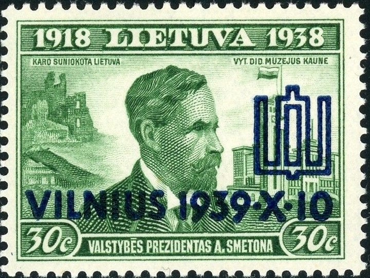 Visibility: public Image owner: none postage 10/10/1939 30c issue=Vilnius recovery ovpt=VILNIUS 1939-X-10 oc=blk on=issue=independence 20th-30c wmk=multiple letters perf=12.75x13.5 Crops No visible images cropped from this one. Measurements Resolution is unknown. Source Source name: Colnect File URL: http://i.colnect.net/b/5038/783/Wilna-back-in-Lithuania.jpg Uploaded February 24, 2019, 8:48 pm by Stan Shebs |
