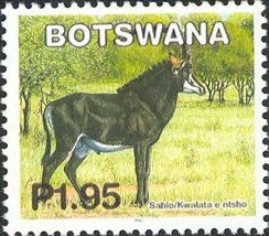 Visibility: public Image owner: none postage 8/5/2002 1.95p multi dt=mammals of Botswana d=sable (2002) unwmk Crops No visible images cropped from this one. Measurements Resolution is unknown. Source Source name: Colnect File URL: http://i.colnect.net/b/1235/999/Sable-Antelope-Hippotragus-niger.jpg Uploaded August 26, 2014, 9:35 pm by Stan Shebs |