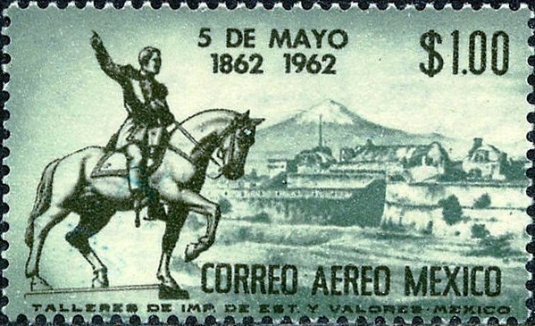Visibility: public Image owner: none airmail 5/5/1962 1p issue=100th Anniversary of the Battle of Puebla wmk=MEX-MEX & eagle perf=14 Crops No visible images cropped from this one. Measurements Resolution is unknown. Source Source name: Colnect File URL: http://i.colnect.net/b/4947/907/100-Years-mayo.jpg Uploaded February 27, 2019, 10:19 pm by Stan Shebs |