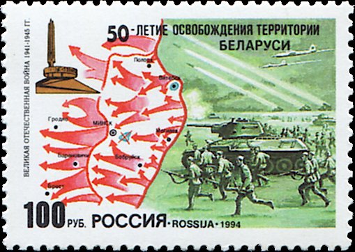 Visibility: public Image owner: none postage 4/26/1994 100r multi issue=50th Anniversary of Liberation d="Bagration", Combined offensive unwmk perf=12.5x12 Crops No visible images cropped from this one. Measurements Resolution is unknown. Source Source name: Colnect File URL: http://i.colnect.net/b/4955/716/Liberation-of-Belarus-Tank-T-34-76-infantry.jpg Uploaded March 18, 2019, 9:16 pm by Stan Shebs |