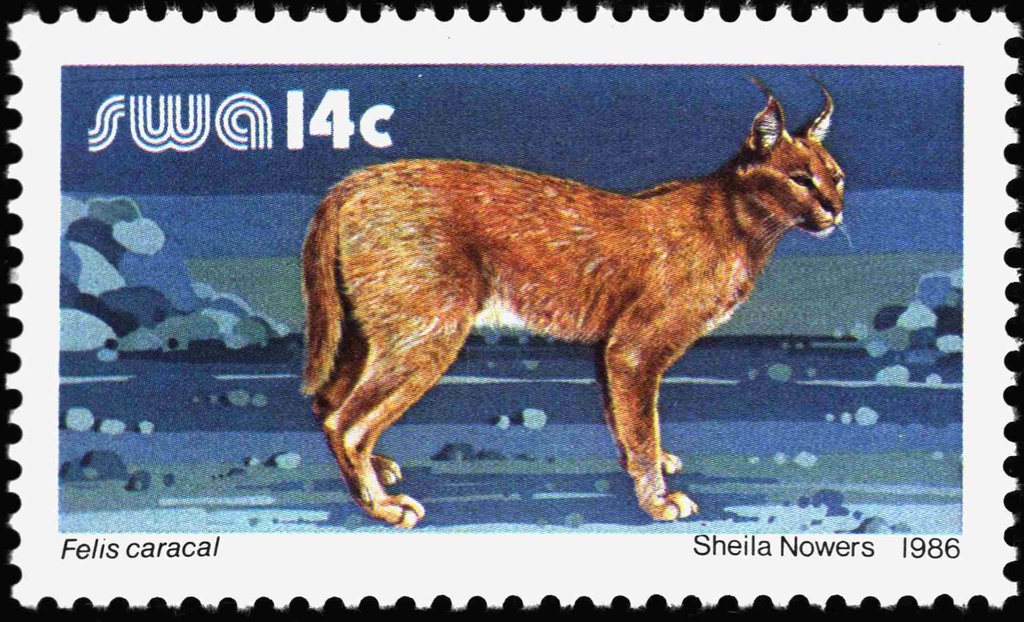 Visibility: public Image owner: none postage 4/1/1986 14c multi d=Felis caracal (1986) wmk=RSA in triangle Crops No visible images cropped from this one. Measurements Resolution is unknown. Source Source name: Colnect File URL: http://i.colnect.net/b/5211/075/Carakal-Caracal-caracal.jpg Uploaded March 25, 2019, 12:32 am by Stan Shebs |