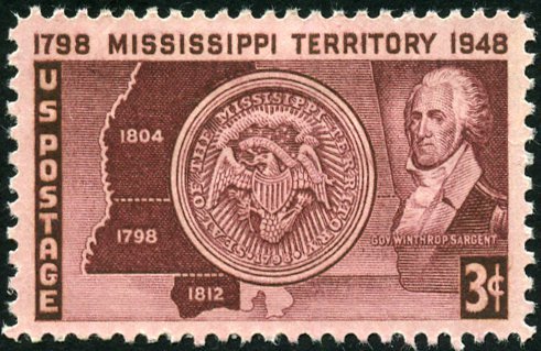 Visibility: public Image owner: none postage 4/7/1948 3c mar issue=Mississippi territory 150th d=map of Mississippi & Seal of Mississippi & Winthrop Sargent unwmk perf=11x10.5 Crops No visible images cropped from this one. Measurements Resolution is unknown. Source Source name: Colnect File URL: http://i.colnect.net/b/5026/234/Map--amp--Seal-of-Mississippi-Territory--amp--Gov-Winthrop-Sargent.jpg Uploaded April 2, 2019, 1:20 am by Stan Shebs |