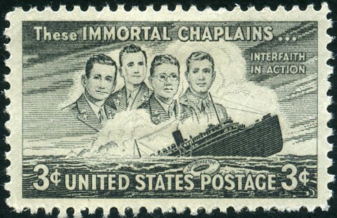 Visibility: public Image owner: none postage 5/28/1948 3c blk d=four chaplains unwmk perf=11x10.5 Crops No visible images cropped from this one. Measurements Resolution is unknown. Source Source name: Colnect File URL: http://i.colnect.net/b/5026/235/Four-Chaplains-and-Sinking-S-S-Dorchester.jpg Uploaded April 2, 2019, 1:20 am by Stan Shebs |