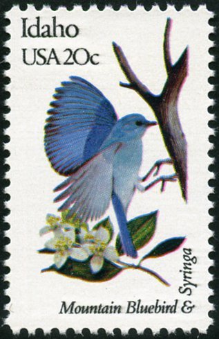 Visibility: public Image owner: none postage 4/14/1982 20c multi issue=state birds & flowers dt=state birds & flowers d=Idaho - mountain bluebird & Syringa unwmk perf=10.5x11 Crops No visible images cropped from this one. Measurements Resolution is unknown. Source Source name: Colnect File URL: http://i.colnect.net/b/5097/011/Idaho---Mountain-Bluebird-Syringa.jpg Uploaded April 2, 2019, 1:56 am by Stan Shebs |