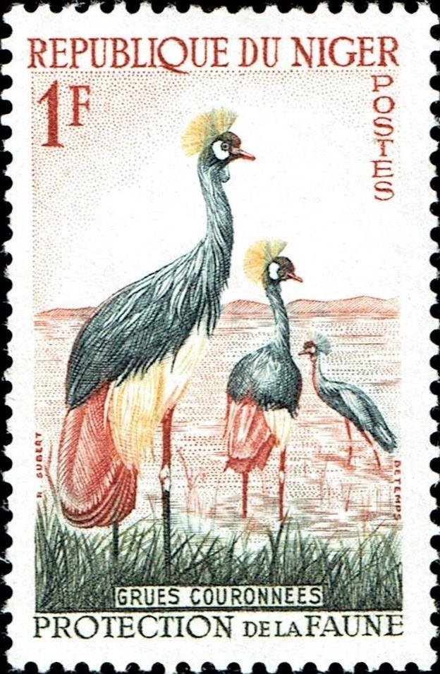 Visibility: public Image owner: none postage 1959 1fr multi issue=1959 d=crowned cranes unwmk perf=13 Crops No visible images cropped from this one. Measurements Resolution is unknown. Source Source name: Colnect File URL: http://i.colnect.net/b/5253/037/Black-Crowned-Crane-Balearica-pavonina.jpg Uploaded April 9, 2019, 7:15 pm by Stan Shebs |