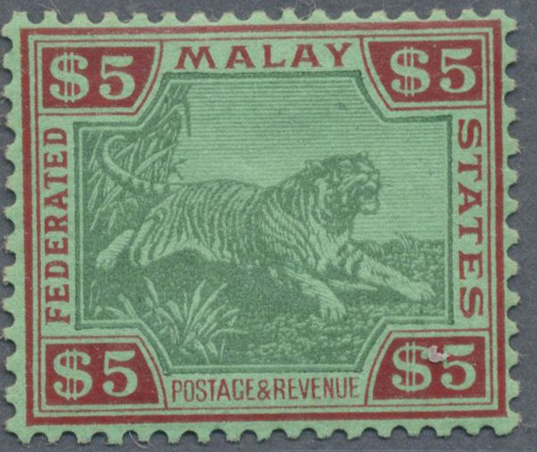 Visibility: public Image owner: none postage 7/1934 $5 red&blgrn pc=grn issue=1931 d=tiger (1900) wmk=mult crown & script CA perf=14 Crops No visible images cropped from this one. Measurements Resolution is unknown. Source Source name: Colnect File URL: http://i.colnect.net/b/5198/746/Tiger-Panthera-tigris.jpg Uploaded October 16, 2019, 10:00 pm by Stan Shebs |