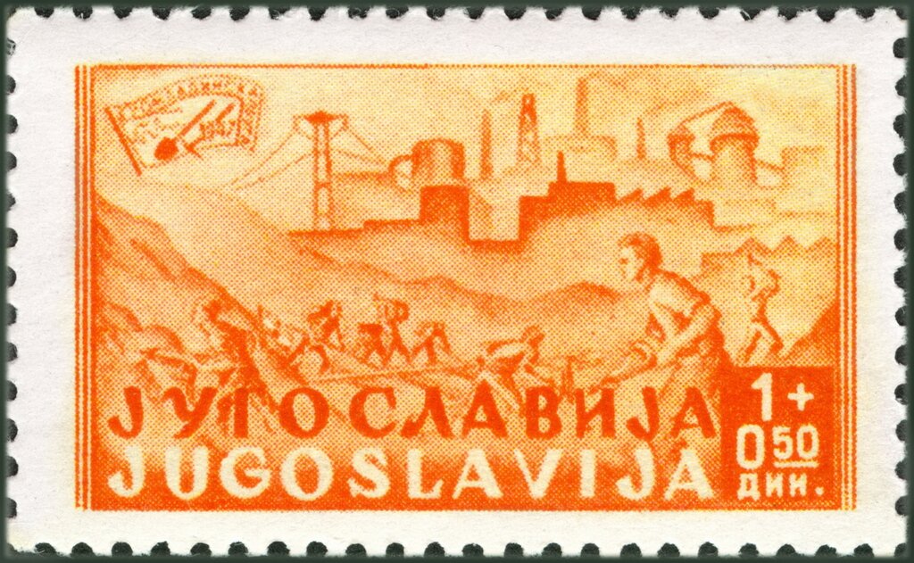 Visibility: public Image owner: none semipostal 9/25/1947 1+0.50din yel&redorg issue=Construction of the Samac-Sarajevo Railway unwmk perf=11.5x12 Crops No visible images cropped from this one. Measurements Resolution is unknown. Source Source name: Colnect File URL: http://i.colnect.net/b/5660/325/Young-Railway-Laborers.jpg Uploaded October 30, 2019, 8:23 pm by Stan Shebs |