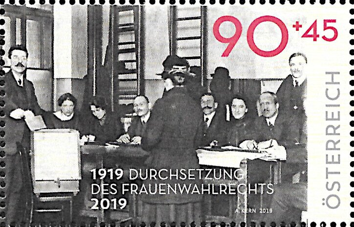 Visibility: public Image owner: none semipostal 9/17/2019 90+45(c) multi issue=100th Anniversary of Women's Suffrage in Austria unwmk Crops No visible images cropped from this one. Measurements Resolution is unknown. Source Source name: Colnect File URL: http://i.colnect.net/b/6044/313/Centenary-of-Women-s-Suffrage-in-Austria.jpg Uploaded November 7, 2019, 4:28 pm by Stan Shebs |