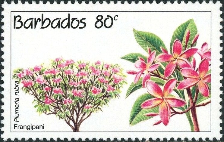 Visibility: public Image owner: none postage 6/9/1992 80c multi issue=Conservation 1992 dt=flowering trees (1992 Barbados) d=Plumeria rubra (1992) wmk=crown & CA spiral perf=13.75 Crops No visible images cropped from this one. Measurements Resolution is unknown. Source Source name: Colnect File URL: http://i.colnect.net/b/5608/902/Flowering-trees.jpg Uploaded November 8, 2019, 3:06 am by Stan Shebs |