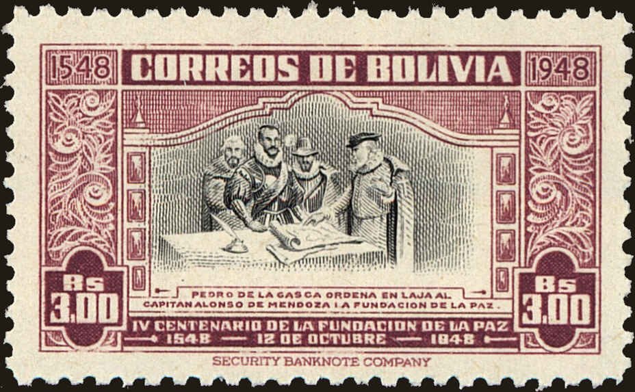 Visibility: public Image owner: none postage 3/15/1951 3b pur&blk issue=La Paz 400th d=La Gasca ordering Mendoza to found La Paz unwmk Crops No visible images cropped from this one. Measurements Resolution is unknown. Source Source name: Colnect File URL: http://i.colnect.net/b/5396/137/La-Gasca-ordering-Mendoza-to-found-La-Paz.jpg Uploaded November 9, 2019, 3:19 pm by Stan Shebs |