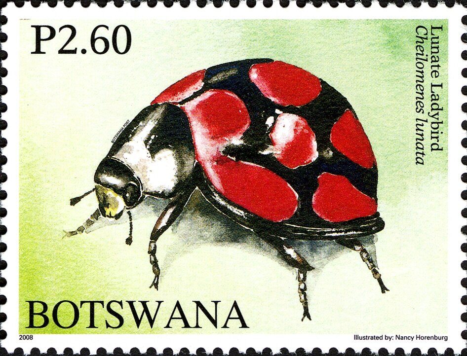 Visibility: public Image owner: none postage 12/1/2008 2.60p multi dt=beetles of Botswana d=Lunate Ladybird unwmk perf=14 Crops No visible images cropped from this one. Measurements Resolution is unknown. Source Source name: Colnect File URL: http://i.colnect.net/b/5780/509/Lunate-Ladybird-Cheilomenes-lunata.jpg Uploaded November 9, 2019, 7:01 pm by Stan Shebs |