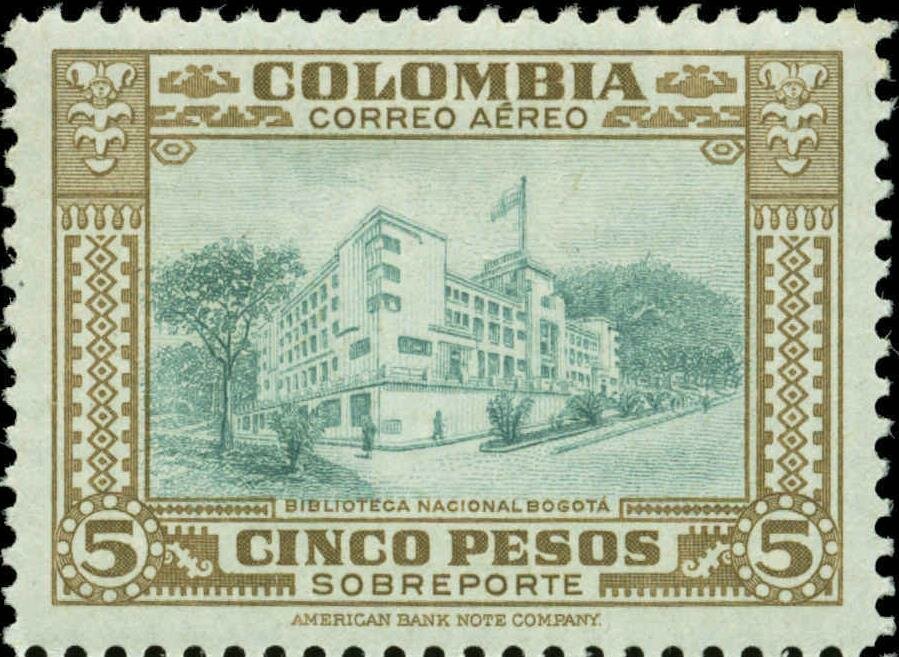 Visibility: public Image owner: none airmail 7/21/1948 5p brn&blgrn issue=1948 air d=National Library of Colombia unwmk perf=12 Crops No visible images cropped from this one. Measurements Resolution is unknown. Source Source name: Colnect File URL: http://i.colnect.net/b/5481/538/National-Library-Bogota.jpg Uploaded November 19, 2019, 6:30 pm by Stan Shebs |