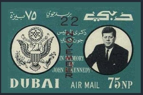 Type: stamp Issuer: Dubai Date: 1964 Denom: ?