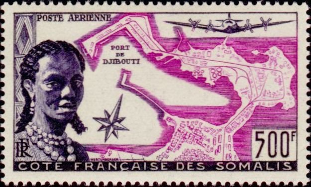 Visibility: public Image owner: none airmail 2/20/1956 500fr dkvio&rosevio d=Somali woman & map of Djibouti & airplane unwmk perf=13 Crops No visible images cropped from this one. Measurements Resolution is unknown. Source Source name: Colnect File URL: http://i.colnect.net/b/806/397/Girl-from-Djibouti-and-aerial-port.jpg Uploaded August 27, 2014, 3:24 pm by Stan Shebs |