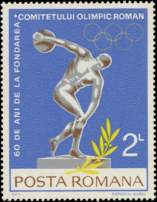 Visibility: public Image owner: none postage 11/11/1974 2l multi issue=60 Years Olympic Committee of Romania d=Discus-thrower statue of Myron unwmk perf=13.25 Crops No visible images cropped from this one. Measurements Resolution is unknown. Source Source name: Colnect File URL: http://i.colnect.net/b/5066/240/60-Years-Olympic-Committee-of-Romania.jpg Uploaded January 13, 2020, 5:27 pm by Stan Shebs |