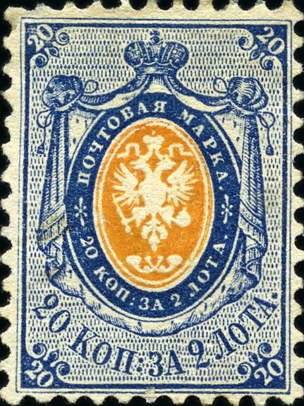 Visibility: public Image owner: none postage 10/28/1858 20k bl&org issue=1858b d=arms of Russia (1857 mantled) unwmk perf=12.5 Crops No visible images cropped from this one. Measurements Resolution is unknown. Source Source name: Colnect File URL: http://i.colnect.net/b/5906/945/Coat-of-Arms-of-Russian-Empire-Postal-Dep-with-Mantle.jpg Uploaded January 13, 2020, 11:20 pm by Stan Shebs |