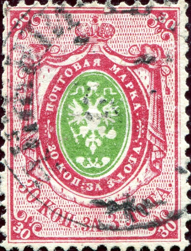 Visibility: public Image owner: none postage 30k car&grn issue=1866 d=arms of Russia (1857 mantled) wmk=Cyrillic EZGB & wavy lines perf=14.5-15 paper=horizontally laid Crops No visible images cropped from this one. Measurements Resolution is unknown. Source Source name: Colnect File URL: http://i.colnect.net/b/6285/526/Coat-of-Arms-of-Russian-Empire-Postal-Dep-with-Mantle.jpg Uploaded January 13, 2020, 11:41 pm by Stan Shebs |