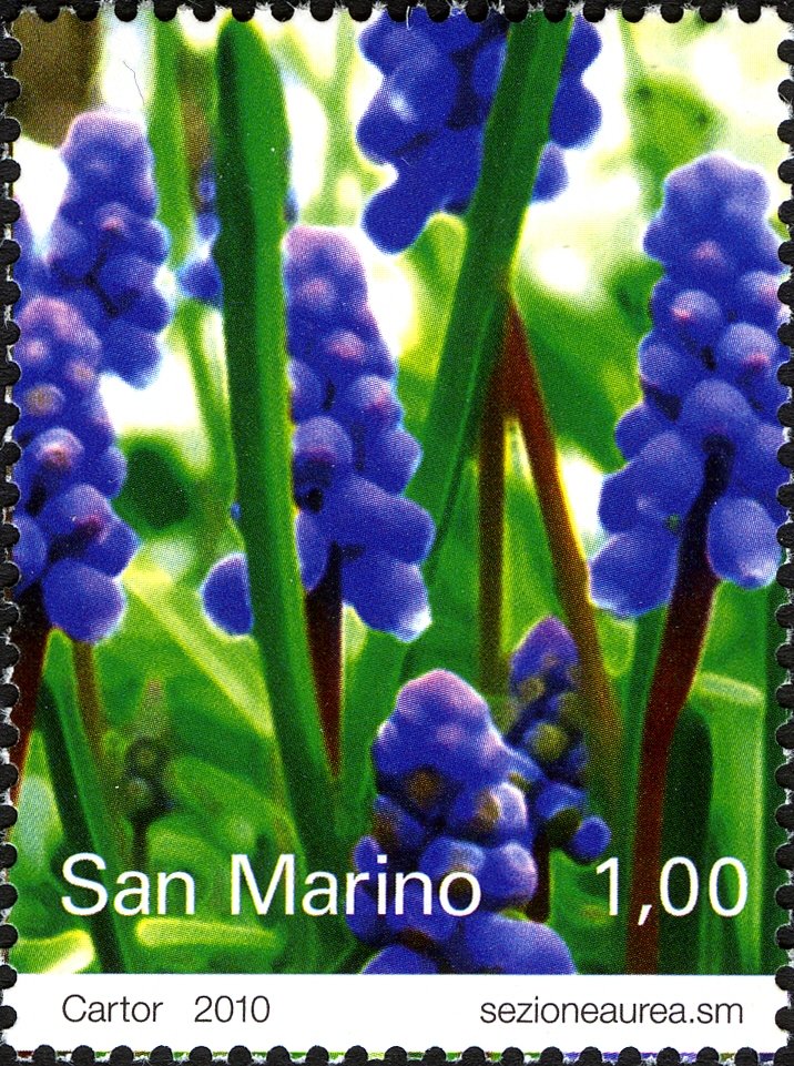 Visibility: public Image owner: none postage 2/9/2010 1.00€ multi issue=Flowers 2010 dt=flowers (2010 San Marino) d=Tassel hyacinths unwmk Crops No visible images cropped from this one. Measurements Resolution is unknown. Source Source name: Colnect File URL: http://i.colnect.net/b/5154/391/Hyacinths.jpg Uploaded January 15, 2020, 10:04 pm by Stan Shebs |