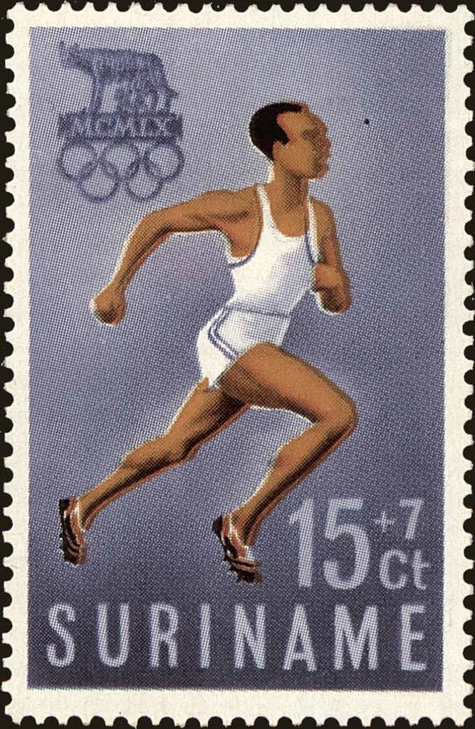 Visibility: public Image owner: none semipostal 8/10/1960 15+7c multi issue=Olympics 1960 d=runner (1960 Surinam) unwmk perf=14.25x13.25 Crops No visible images cropped from this one. Measurements Resolution is unknown. Source Source name: Colnect File URL: http://i.colnect.net/b/4969/583/Runner.jpg Uploaded January 22, 2020, 9:44 pm by Stan Shebs |