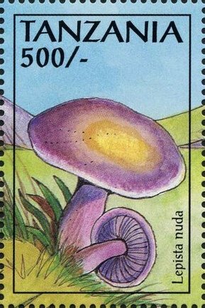 Visibility: public Image owner: none postage 6/18/1993 500sh multi issue=Fungi 1993 dt=Fungi (1993 Tanzania) d=Lepista nuda (1993) unwmk perf=14 Crops No visible images cropped from this one. Measurements Resolution is unknown. Source Source name: Colnect File URL: http://i.colnect.net/b/6437/688/Lepista-nuda.jpg Uploaded January 27, 2020, 7:30 pm by Stan Shebs |