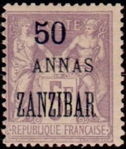 Type: stamp Issuer: French offices in Zanzibar Date: ? Denom: 50a