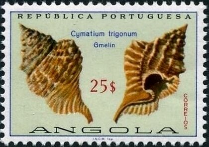Visibility: public Image owner: none postage 10/25/1974 25e multi issue=seashells 1974 dt=seashells (1974 Angola) d=Cymatium trigonum unwmk perf=12x12.5 Crops No visible images cropped from this one. Measurements Resolution is unknown. Source Source name: Colnect File URL: http://i.colnect.net/b/6012/491/Trigonal-Hairy-Triton-Cymatium-trigonum.jpg Uploaded February 12, 2020, 3:51 am by Stan Shebs |
