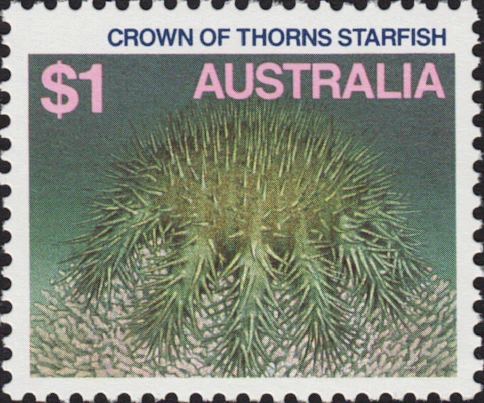 Visibility: public Image owner: none postage 6/11/1986 $1 multi issue=1984 dt=marine life (1984) d=Crown of Thorns Starfish unwmk perf=13.25x13.5 Crops No visible images cropped from this one. Measurements Resolution is unknown. Source Source name: Colnect File URL: http://i.colnect.net/b/5910/573/Crown-of-thorns-Starfish-Acanthaster-planci-.jpg Uploaded February 14, 2020, 1:45 am by Stan Shebs |