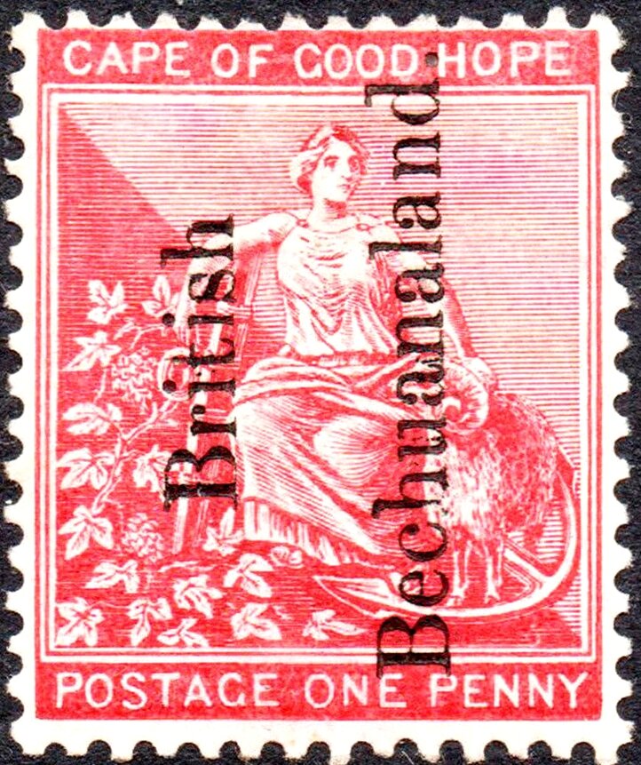 Visibility: public Image owner: none postage 11/1889 1p rose issue=1891 reading up d=Hope seated var=no frame line ovpt=British//Bechuanaland. oc=blk on=issuer=Cape of Good Hope-1885-1p wmk=anchor (1884) perf=14 Crops No visible images cropped from this one. Measurements Resolution is unknown. Source Source name: Colnect File URL: http://i.colnect.net/b/6223/639/Cape-of-Good-Hope-stamps-overprinted-reading-upwards.jpg Uploaded February 21, 2020, 4:16 pm by Stan Shebs |