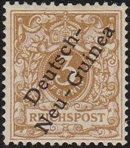 Visibility: public Image owner: none Current identification: postage 2/1898 3pf yelbrn d=crown over numeral ovpt=Deutsch-//Neu-Guinea oc=blk on=issuer=Germany-1889-3pf-yelbrn unwmk perf=13.5x14.25 Crops No visible images cropped from this one. Measurements Resolution is unknown. Source Source name: Colnect File URL: http://i.colnect.net/b/6329/650/Crown-Eagle-with-overprint.jpg Uploaded March 4, 2020, 9:56 pm by Stan Shebs |