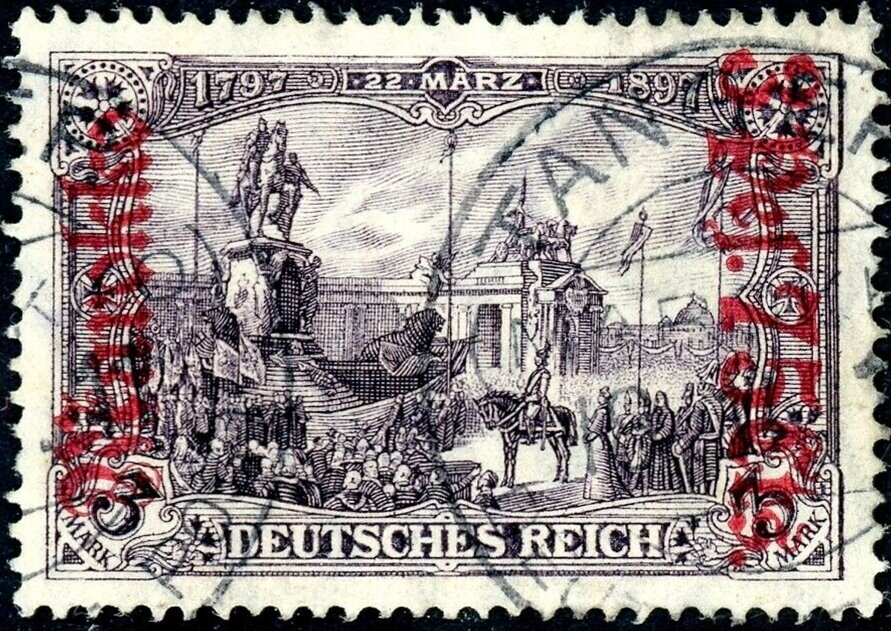 Type: stamp Issuer: German offices in Morocco Date: 1918 Denom: ?