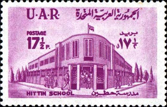 Visibility: public Image owner: none postage 7/1/1960 17 1/2p pur d=Hittin High School - Damascus wmk=national emblem multiple Crops No visible images cropped from this one. Measurements Resolution is unknown. Source Source name: Colnect File URL: http://i.colnect.net/images/b/1491/547/School-at-Hittin.jpg Uploaded August 27, 2014, 7:41 pm by Stan Shebs |