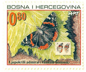 Visibility: public Image owner: none postage 10/25/2002 0.80bam multi d=Vanessa atalanta (2002 Bosnia & Herzegovina, Croat administration) unwmk Crops No visible images cropped from this one. Measurements Resolution is unknown. Source Source name: Colnect File URL: http://i.colnect.net/b/535/995/Red-Admiral-Vanessa-atalanta.jpg Uploaded August 29, 2014, 12:18 am by Stan Shebs |