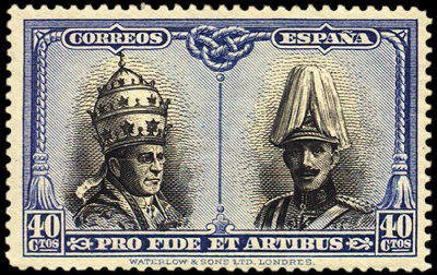 Visibility: public Image owner: none semipostal 12/23/1928 40c issue=catacombs Santiago d=Pope Pius XI & King Alfonso XIII unwmk perf=12.5 Crops No visible images cropped from this one. Measurements Resolution is unknown. Source Source name: Colnect File URL: http://i.colnect.net/b/1515/961/In-Favour-of-San-Damasco-Catacombs.jpg Uploaded August 29, 2014, 7:12 pm by Stan Shebs |