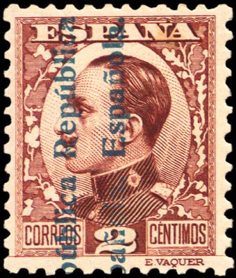Visibility: public Image owner: none postage 5/27/1931 2c redbrn issue=Republic d=King Alfonso XIII (1930) ovpt=Republica//Espanola. oc=blk on=issue=1930-2c unwmk perf=14 Crops No visible images cropped from this one. Measurements Resolution is unknown. Source Source name: Colnect File URL: http://i.colnect.net/b/1507/907/King-Alfonso-XIII-overprint.jpg Uploaded August 29, 2014, 7:13 pm by Stan Shebs |
