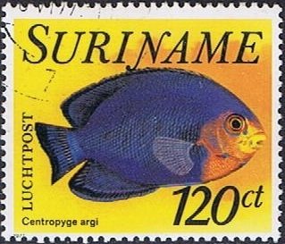 Visibility: public Image owner: none airmail 6/8/1977 120c multi issue=1977 dt=fishes (1977 Surinam) d=Centropyge argi (1977) unwmk perf=12.75x13.25 Crops No visible images cropped from this one. Measurements Resolution is unknown. Source Source name: Colnect File URL: http://i.colnect.net/b/1252/451/Cherub-Angelfish-Centropyge-argi.jpg Uploaded August 29, 2014, 9:08 pm by Stan Shebs  |