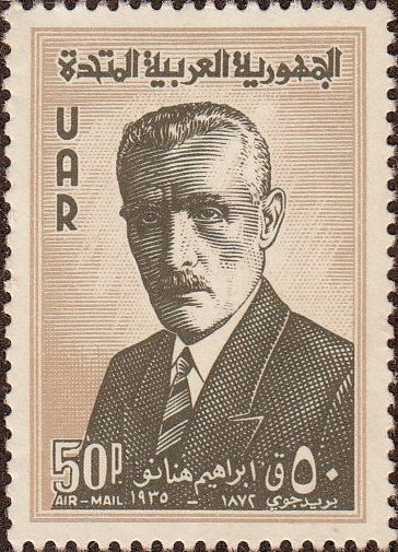 Visibility: public Image owner: none airmail 2/20/1961 50p graybrn&blk d=Ibrahim Hanano wmk=national emblem multiple Crops No visible images cropped from this one. Measurements Resolution is unknown. Source Source name: Colnect File URL: http://i.colnect.net/images/b/1463/977/Ibrahim-Hanano-1872-1935.jpg Uploaded August 30, 2014, 2:44 pm by Stan Shebs |