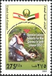 |   (171 x 250 pixels) | Type: stamp Issuer: United Arab Emirates  Date: 2004 Denom: ? Visibility: public Image owner: none postage 10/25/2004 2.75d multi issue=Operation Emirates Solidarity for Mine clearance in south Lebanon unwmk Crops No visible images cropped from this one. Measurements Resolution is unknown. Source Source name: Colnect File URL: http://i.colnect.net/images/b/1390/048/Operation-Emirates-Solidarity-for-Mine-clearance-in-south-Le.jpg Uploaded August 30, 2014, 5:06 pm by Stan Shebs |