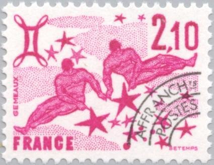 Visibility: public Image owner: none postage 4/1/1977 2.10fr lil issue=zodiac unwmk perf=13 Crops No visible images cropped from this one. Measurements Resolution is unknown. Source Source name: Colnect File URL: http://i.colnect.net/b/145/179/The-Signs-of-the-Zodiac-Gemini.jpg Uploaded August 30, 2014, 5:39 pm by Stan Shebs |