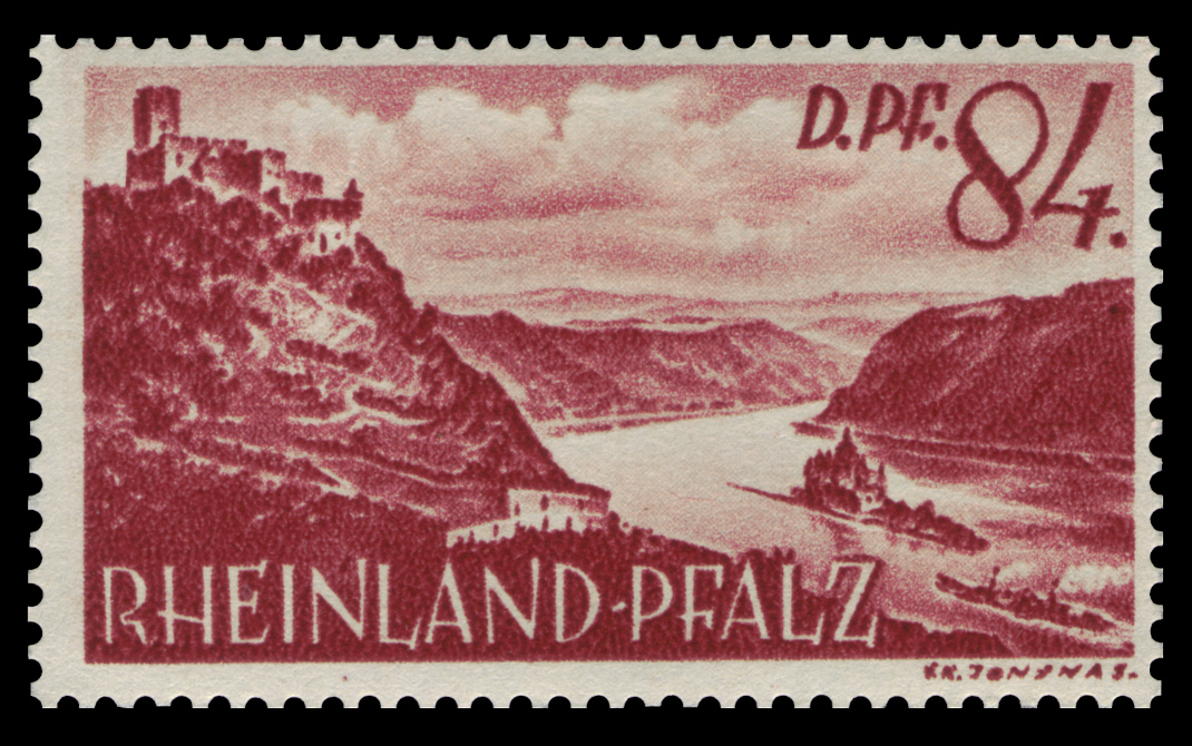 Type: stamp Issuer: Rhine Palatinate Date: 1948 Denom: 84pf