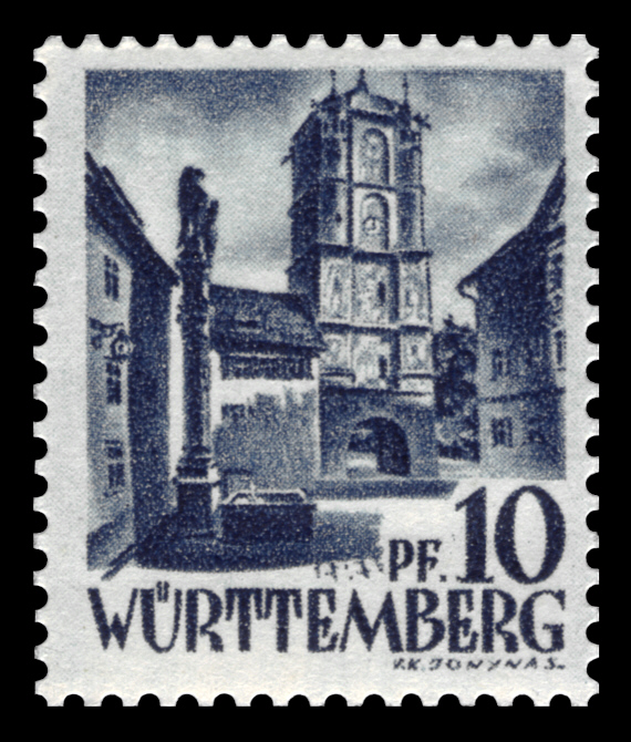 Type: stamp Issuer: Württemberg district Date: 1948 Denom: 10pf