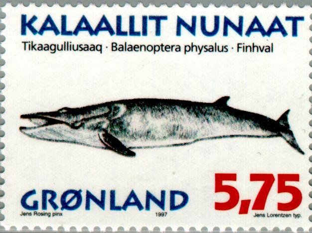 Visibility: public Image owner: none postage 5/5/1997 5,75(k) multi issue=whales 1997 dt=whales (1996 Greenland) d=fin whale Balaenoptera physalus unwmk perf=13x13.25 Crops No visible images cropped from this one. Measurements Resolution is unknown. Source Source name: Colnect File URL: http://i.colnect.net/b/158/615/Fin-Whale-Balaenoptera-physalus.jpg Uploaded May 11, 2013, 1:45 pm by Stan Shebs |